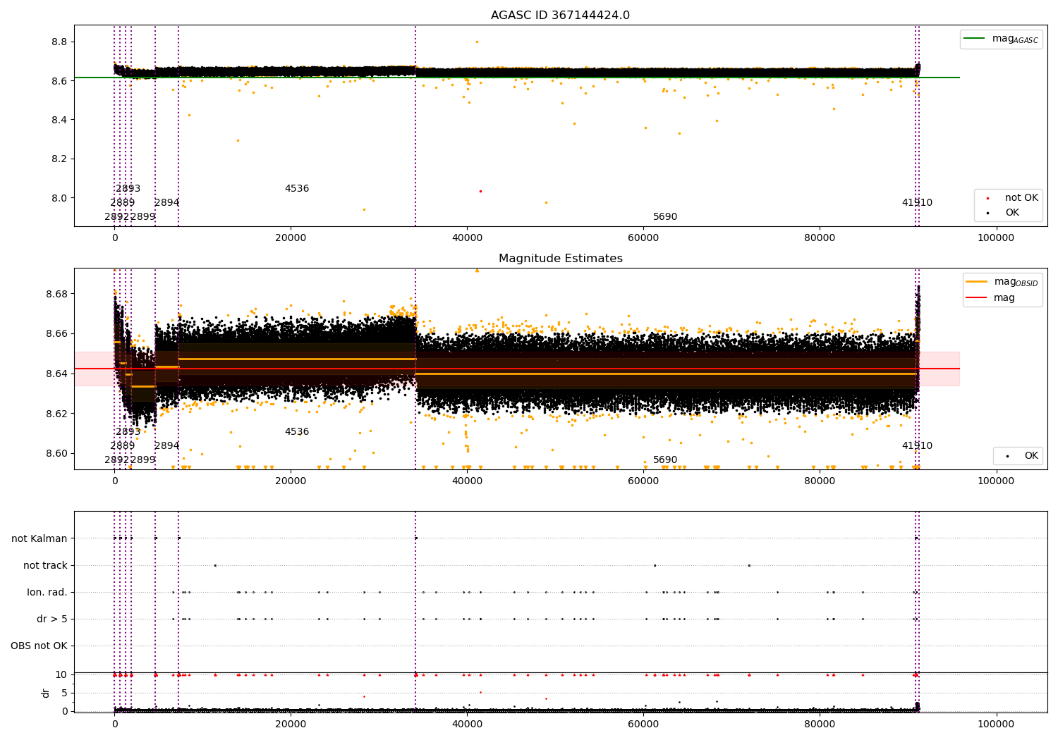- Kalman samples: Subset of samples when ACA could be tracking stars (AOPCADMD == NPNT & AOACASEQ == KALM)