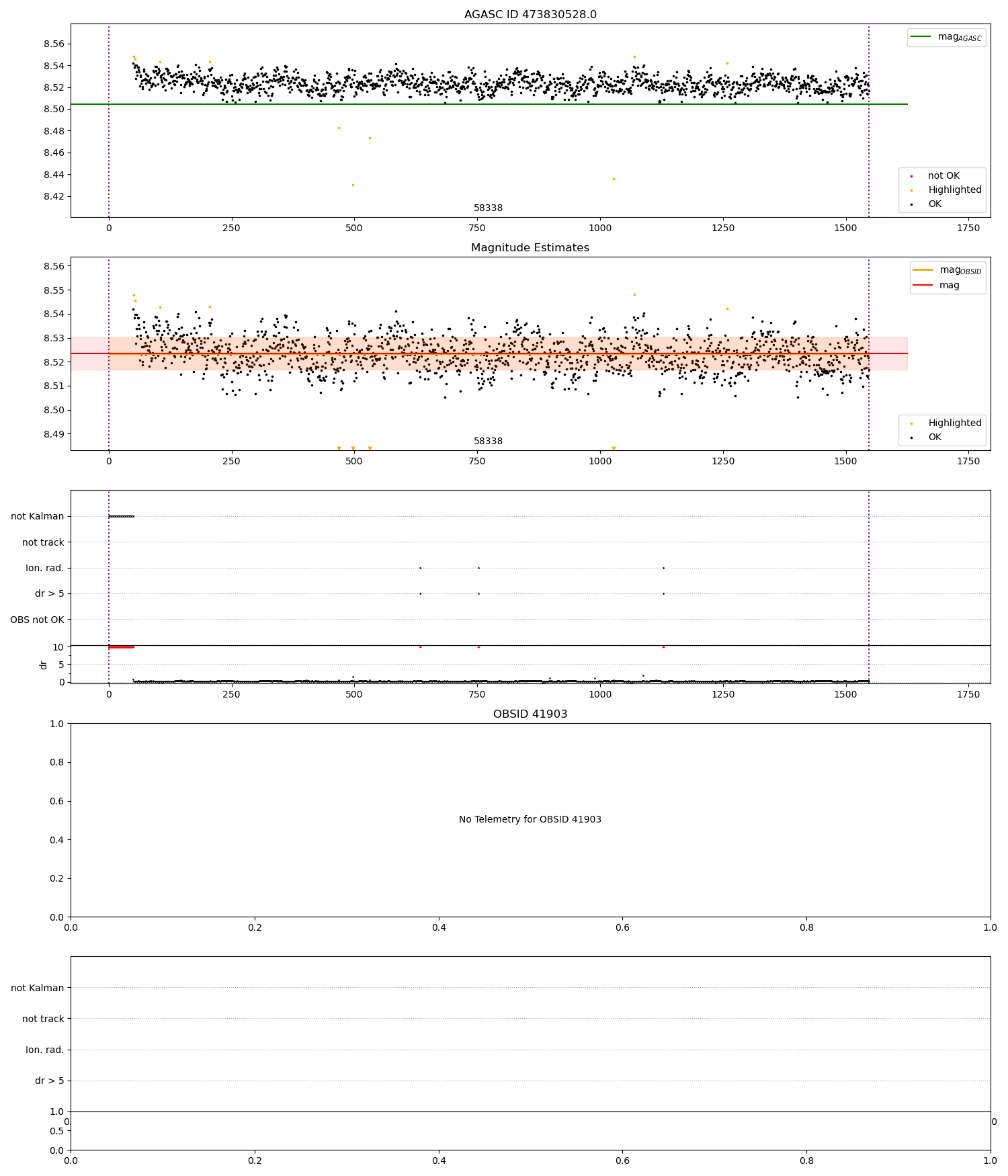 | OBSID | Time | Slot | Row | Col | N | Nmag est ok | Nout | fmag est ok | fdr3 | fdbox5 | fmag est ok 3 | ⟨ δ mag ⟩ 100s | ⟨ mag ⟩ | σmag | Comments |