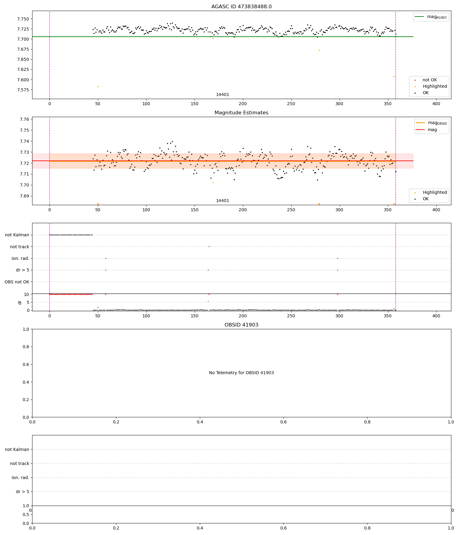 | OBSID | Time | Slot | Row | Col | N | Nmag est ok | Nout | fmag est ok | fdr3 | fdbox5 | fmag est ok 3 | ⟨ δ mag ⟩ 100s | ⟨ mag ⟩ | σmag | Comments |