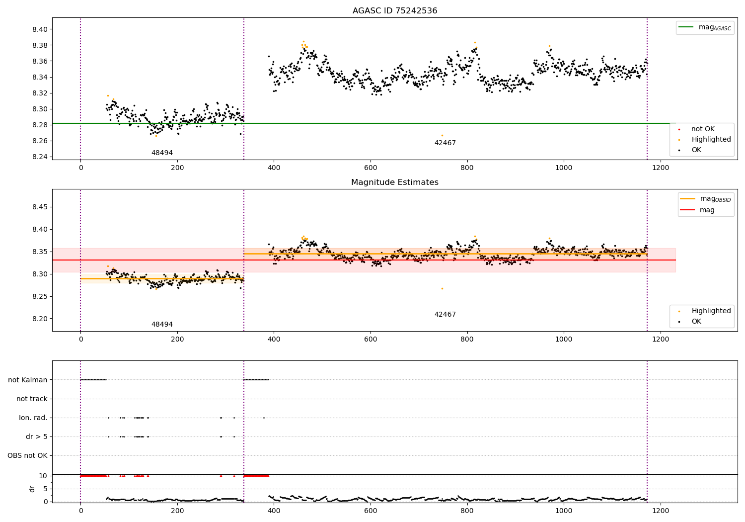 - Kalman samples: Subset of samples when ACA could be tracking stars (AOPCADMD == NPNT & AOACASEQ == KALM)