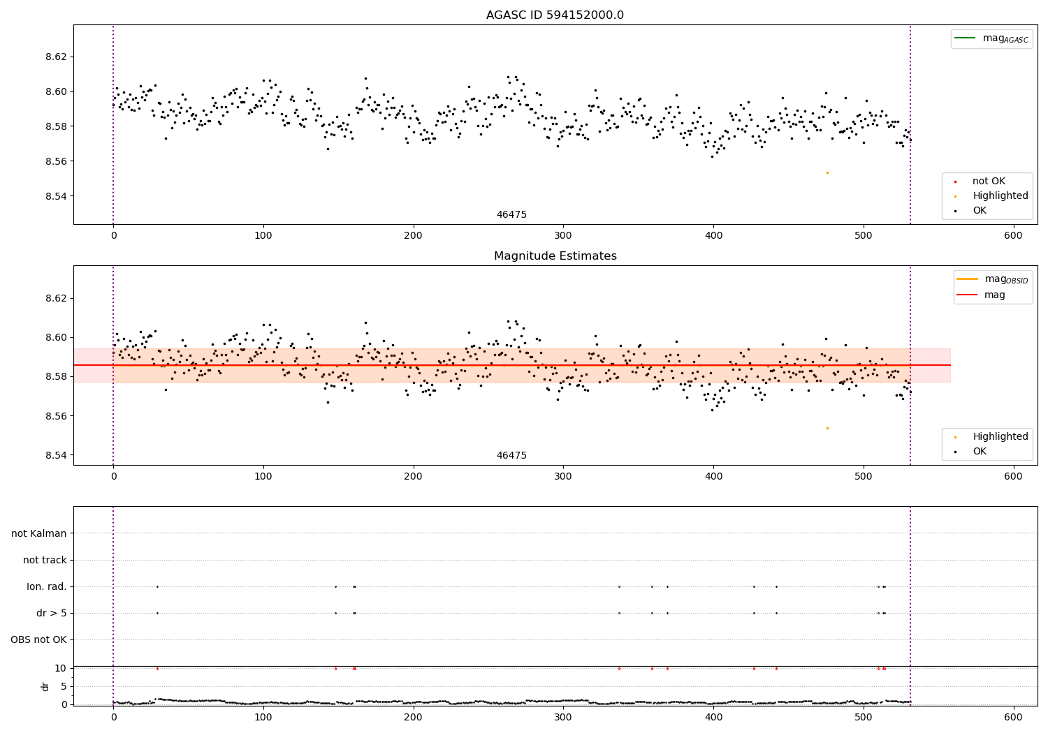 | OBSID | Time | Slot | Row | Col | N | Nok | Nout | ftrack | fdr3 | fdr5 | fok | ⟨ δ mag ⟩ 100s | ⟨ mag ⟩ | σmag | Comments |