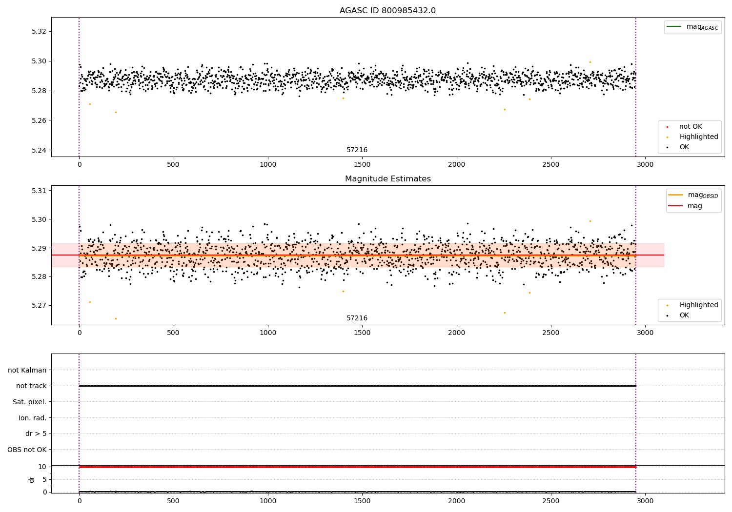 | OBSID | Time | Row | Col | N | Nok | Nout | ftrack | fdr3 | fdr5 | fok | ⟨ δ mag ⟩ 100s | ⟨ mag ⟩ | σmag | Comments |