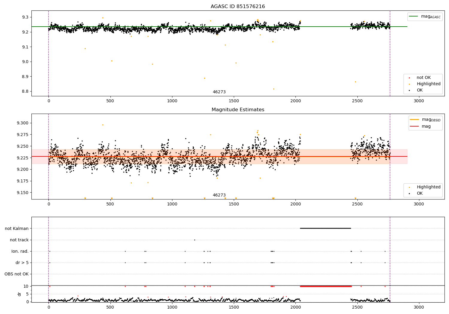 | OBSID | Time | Slot | Row | Col | N | Nok | Nout | ftrack | fdr3 | fdr5 | fok | ⟨ δ mag ⟩ 100s | ⟨ mag ⟩ | σmag | Comments |