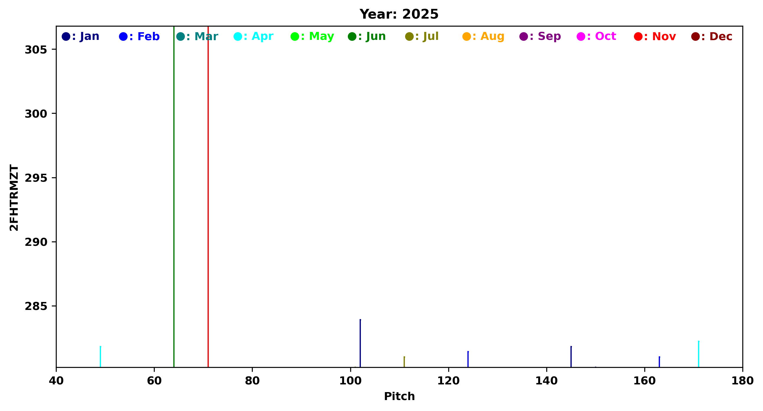 Click the dot in the table to select the year to display. Or click the lime color arrows at either side of the plot to move to the previous or the next year.
