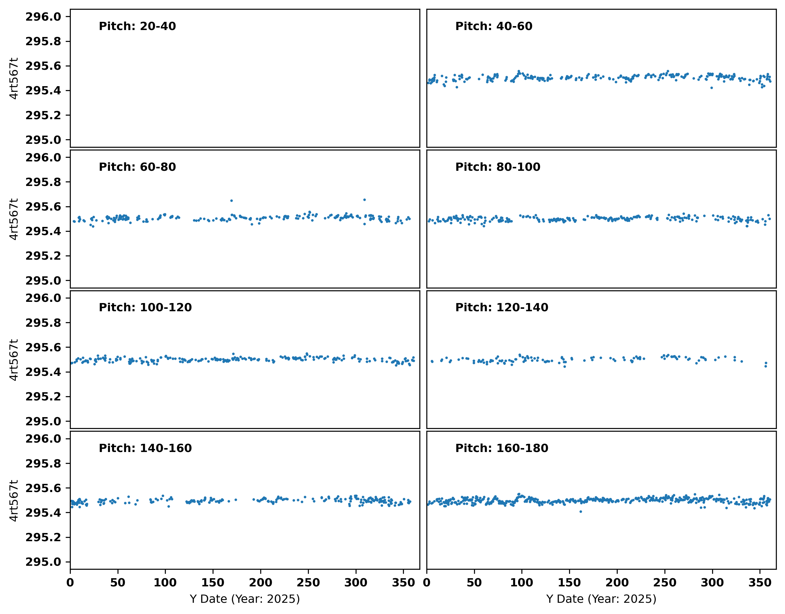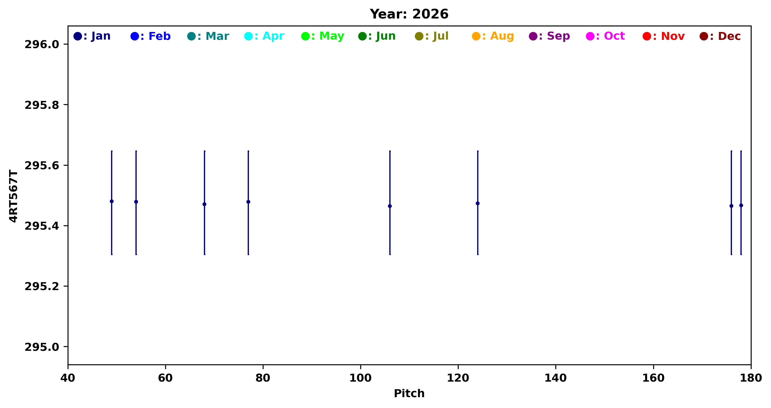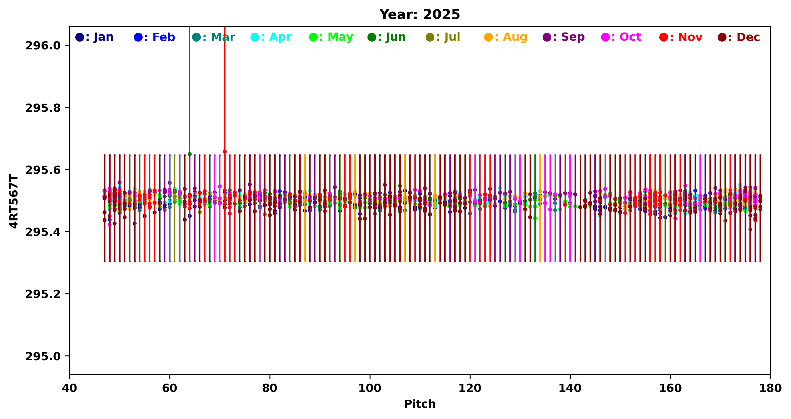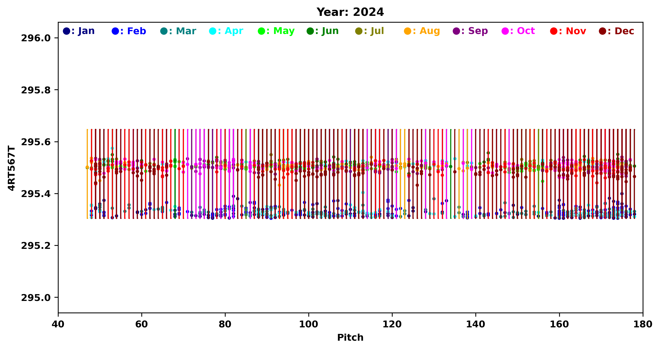 Click the dot in the table to select the year to display. Or click the lime color arrows at either side of the plot to move to the previous or the next year.