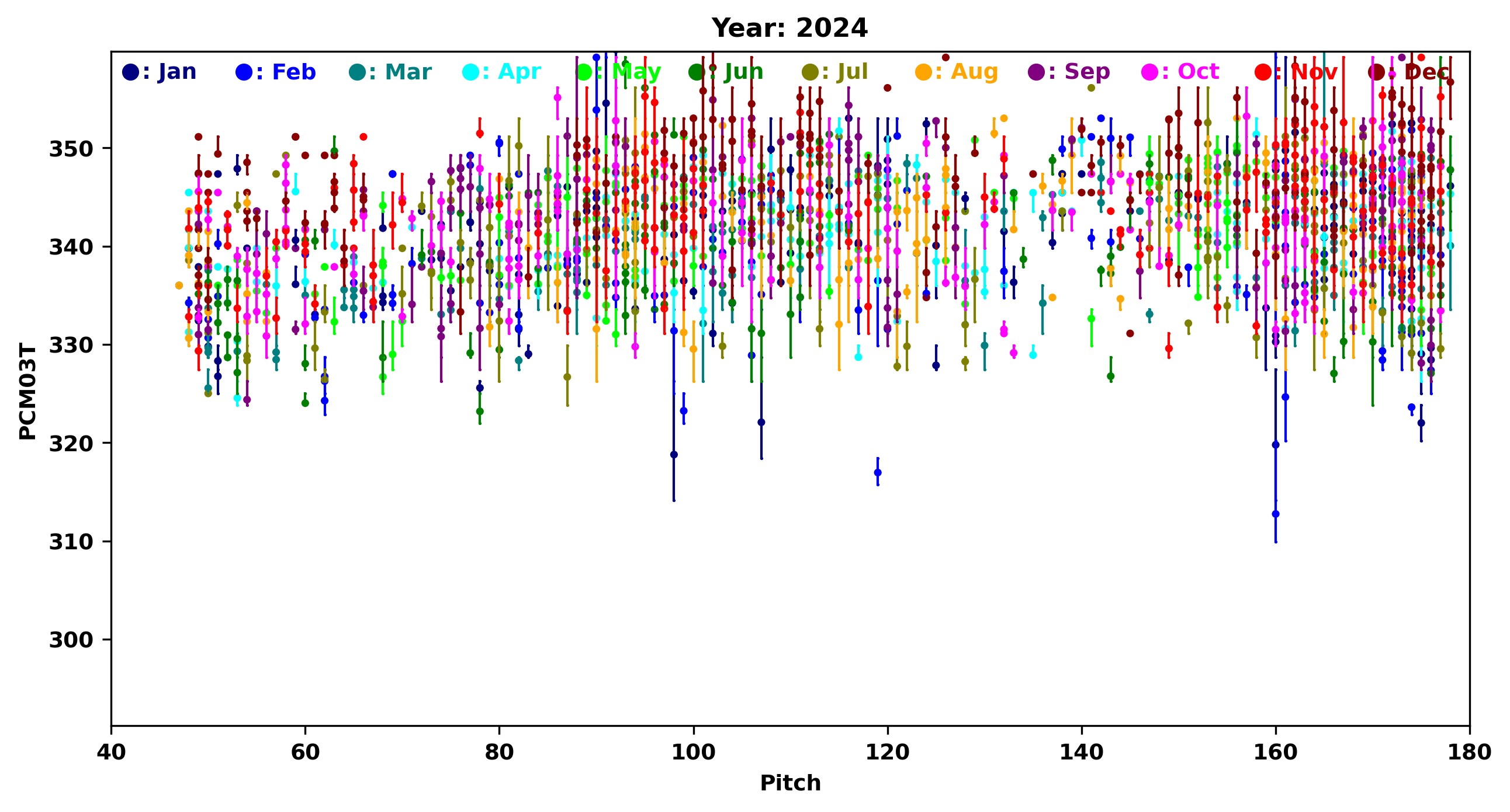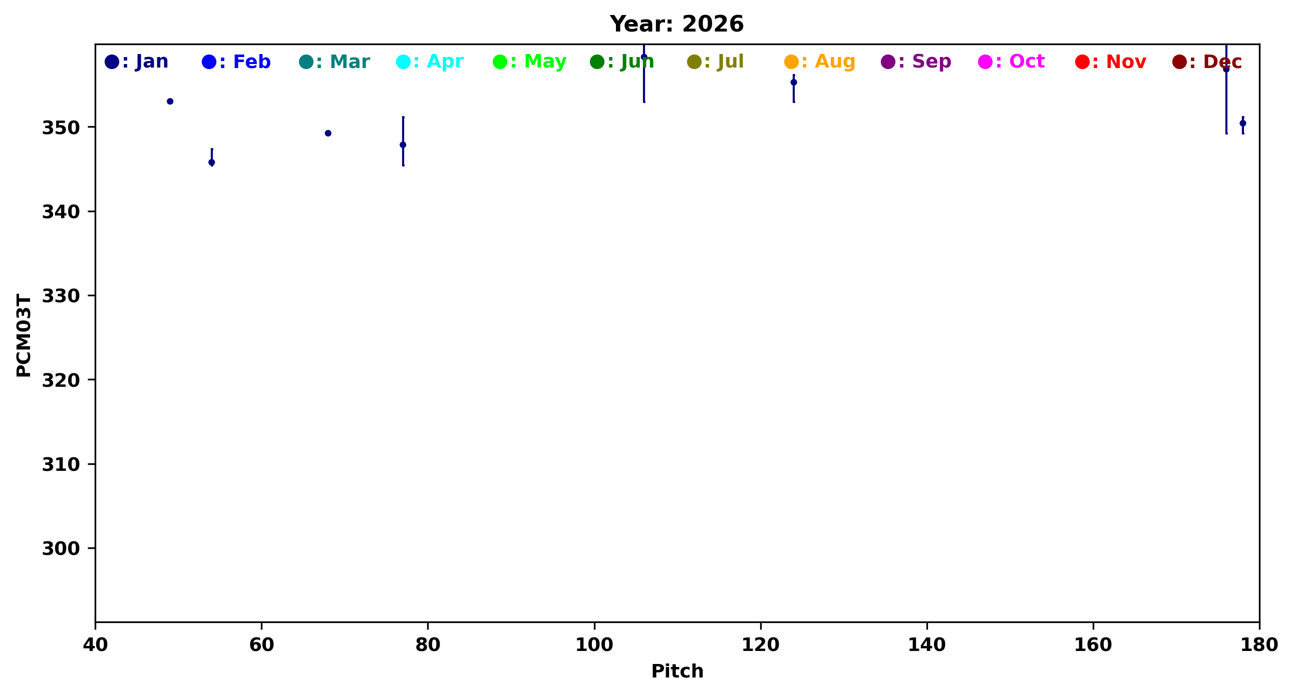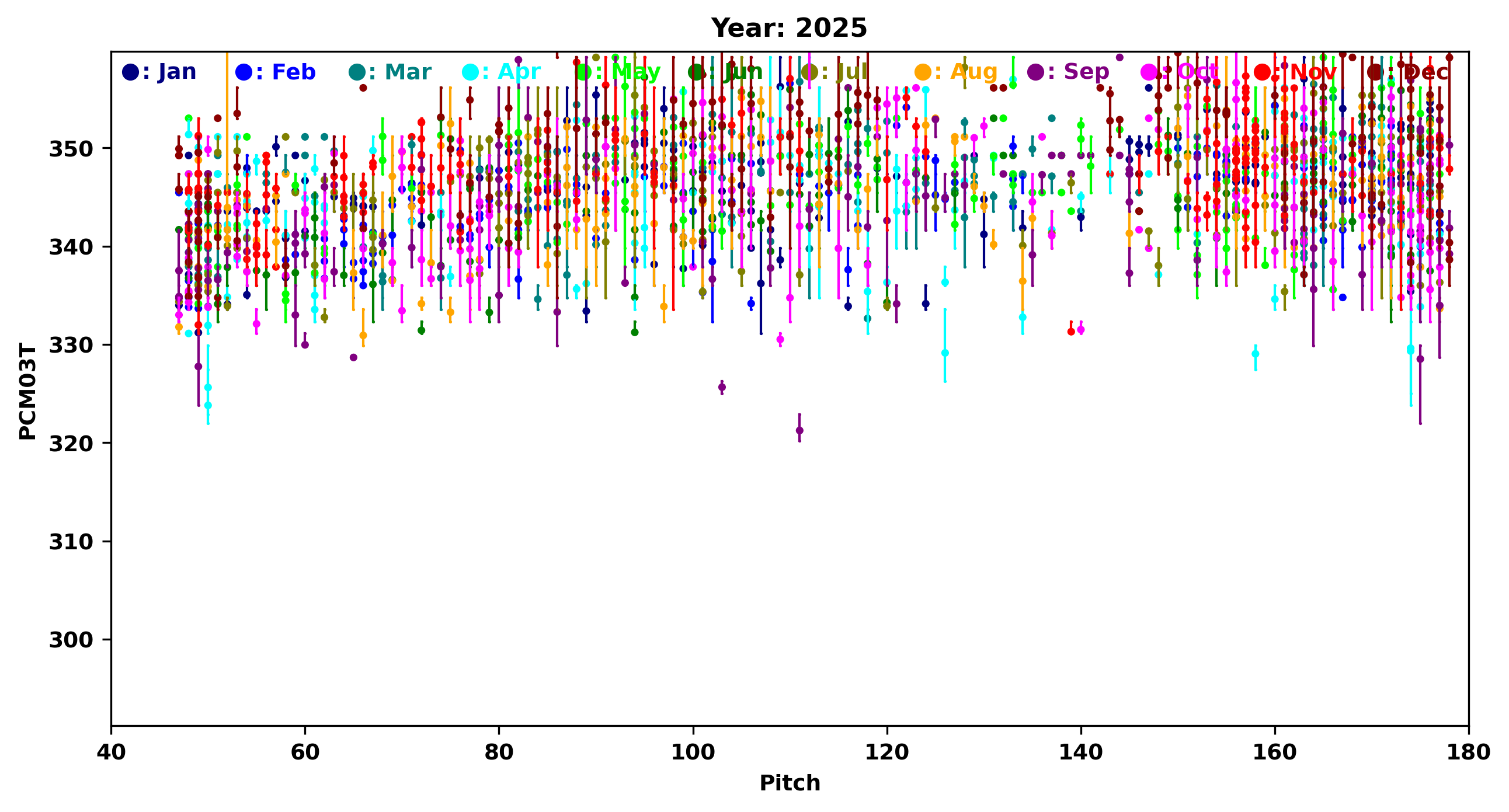 Click the dot in the table to select the year to display. Or click the lime color arrows at either side of the plot to move to the previous or the next year.