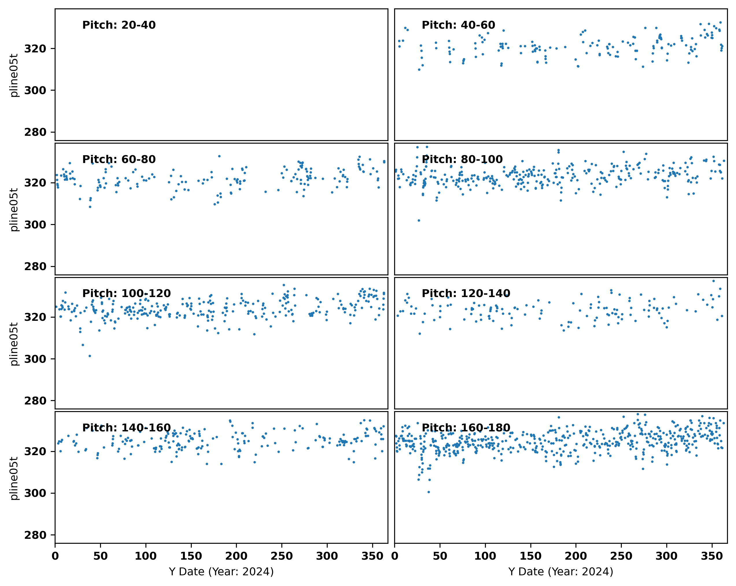 Click the dot in the table to select the year to display. Or click the lime color arrows at either side of the plot to move to the previous or the next year.