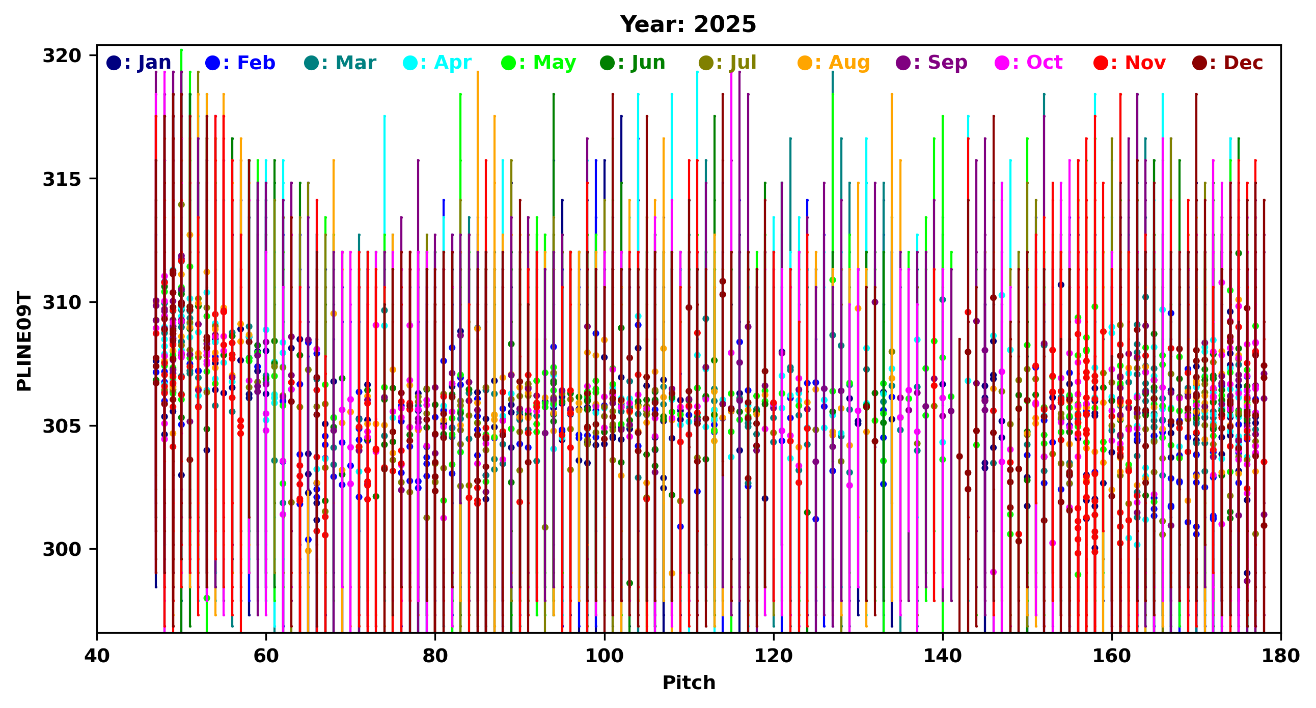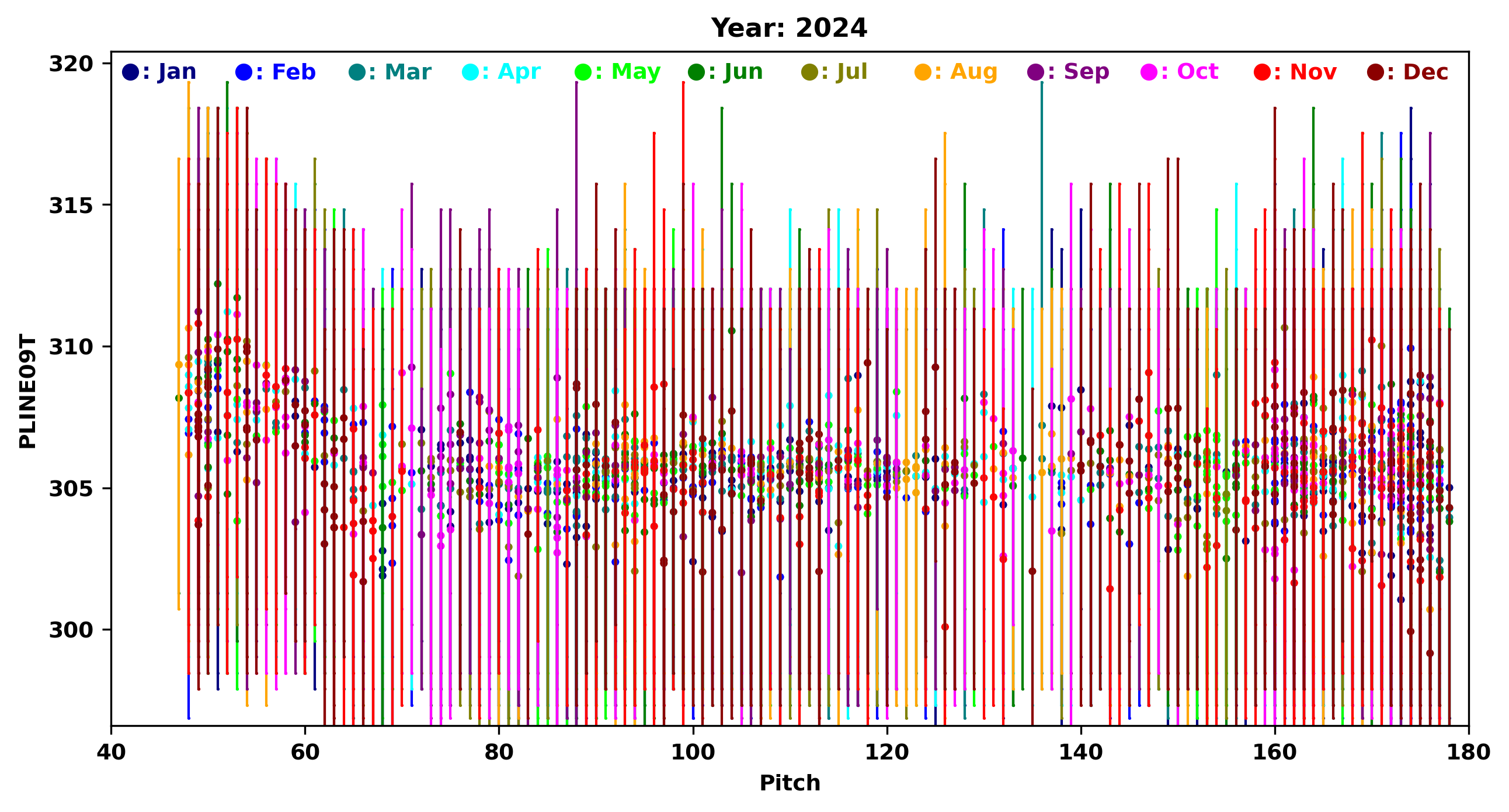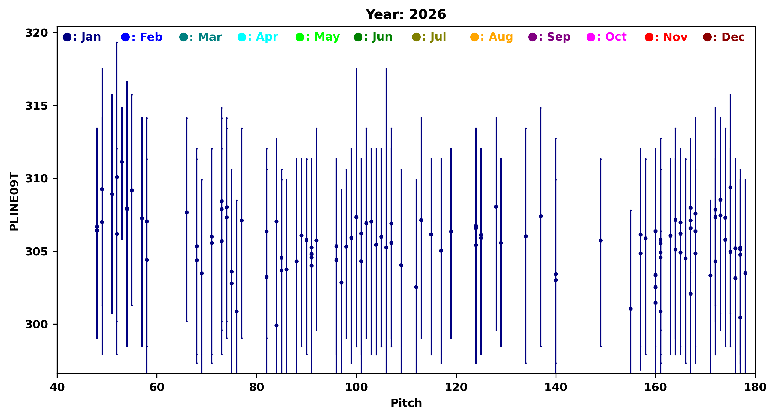 Click the dot in the table to select the year to display. Or click the lime color arrows at either side of the plot to move to the previous or the next year.