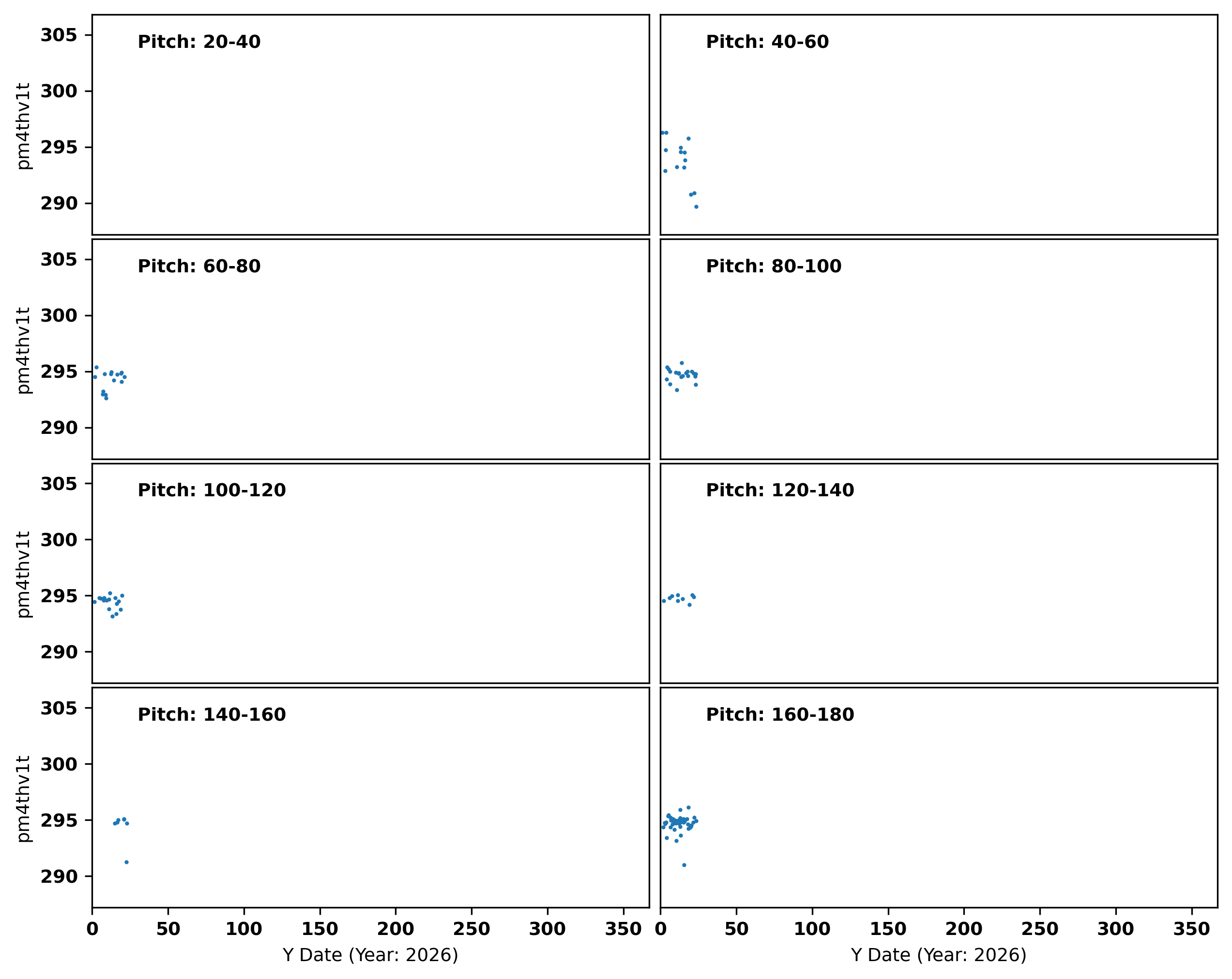 Click the dot in the table to select the year to display. Or click the lime color arrows at either side of the plot to move to the previous or the next year.