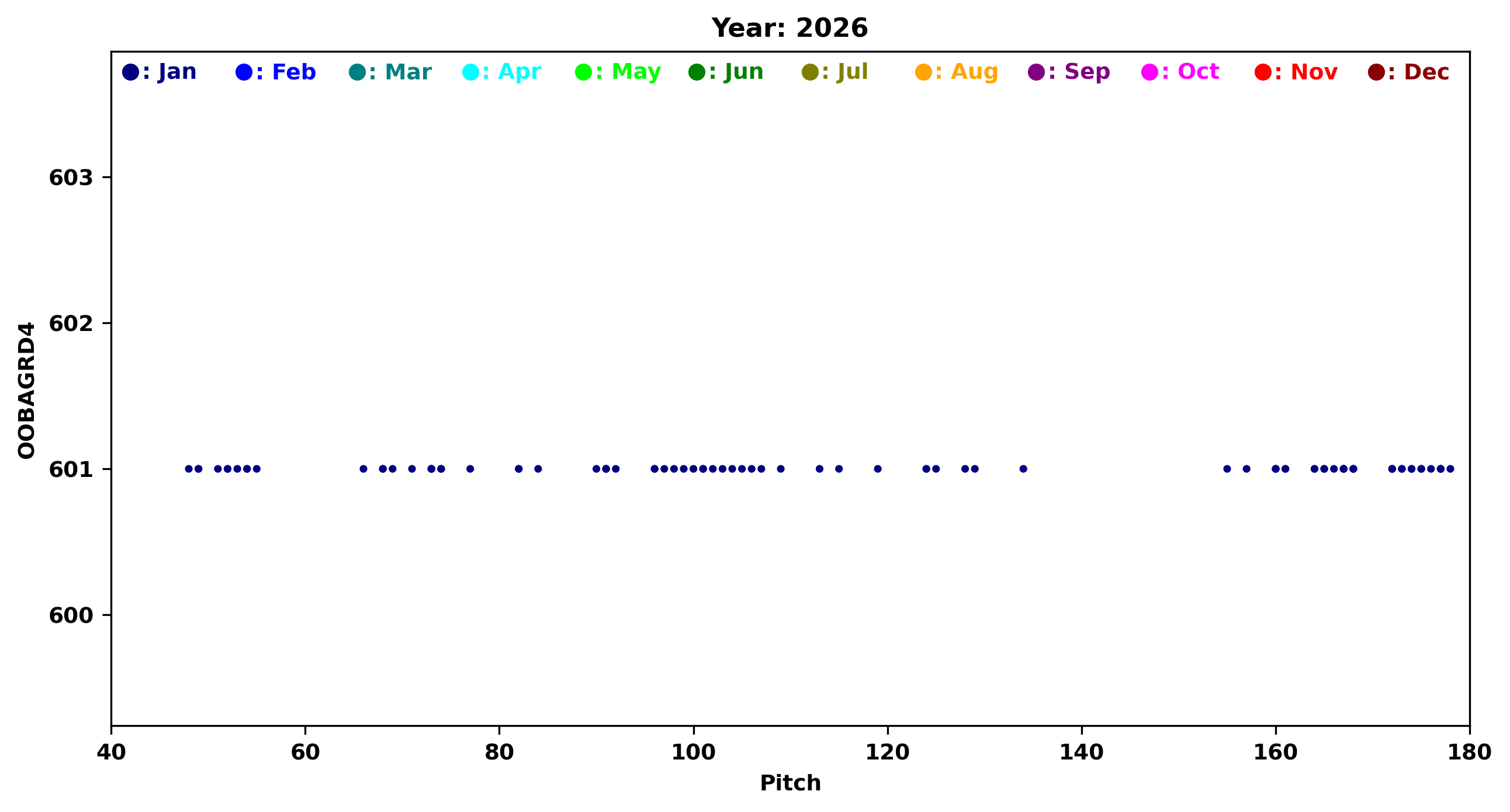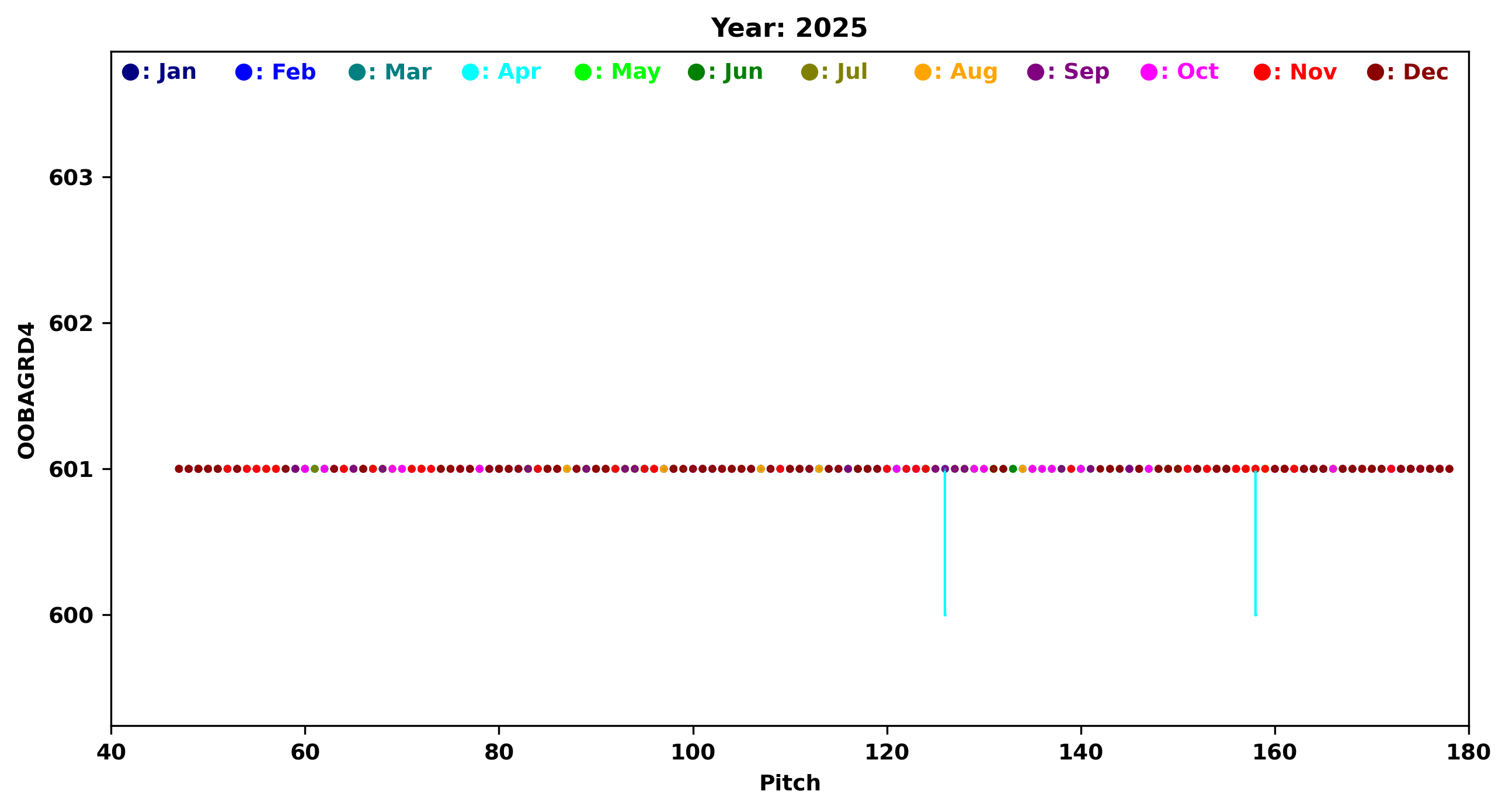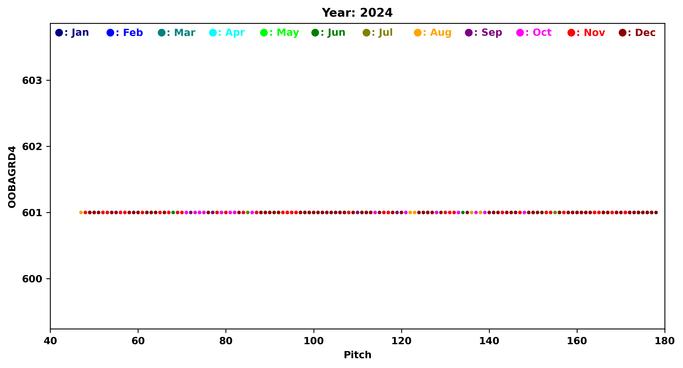Click the dot in the table to select the year to display. Or click the lime color arrows at either side of the plot to move to the previous or the next year.