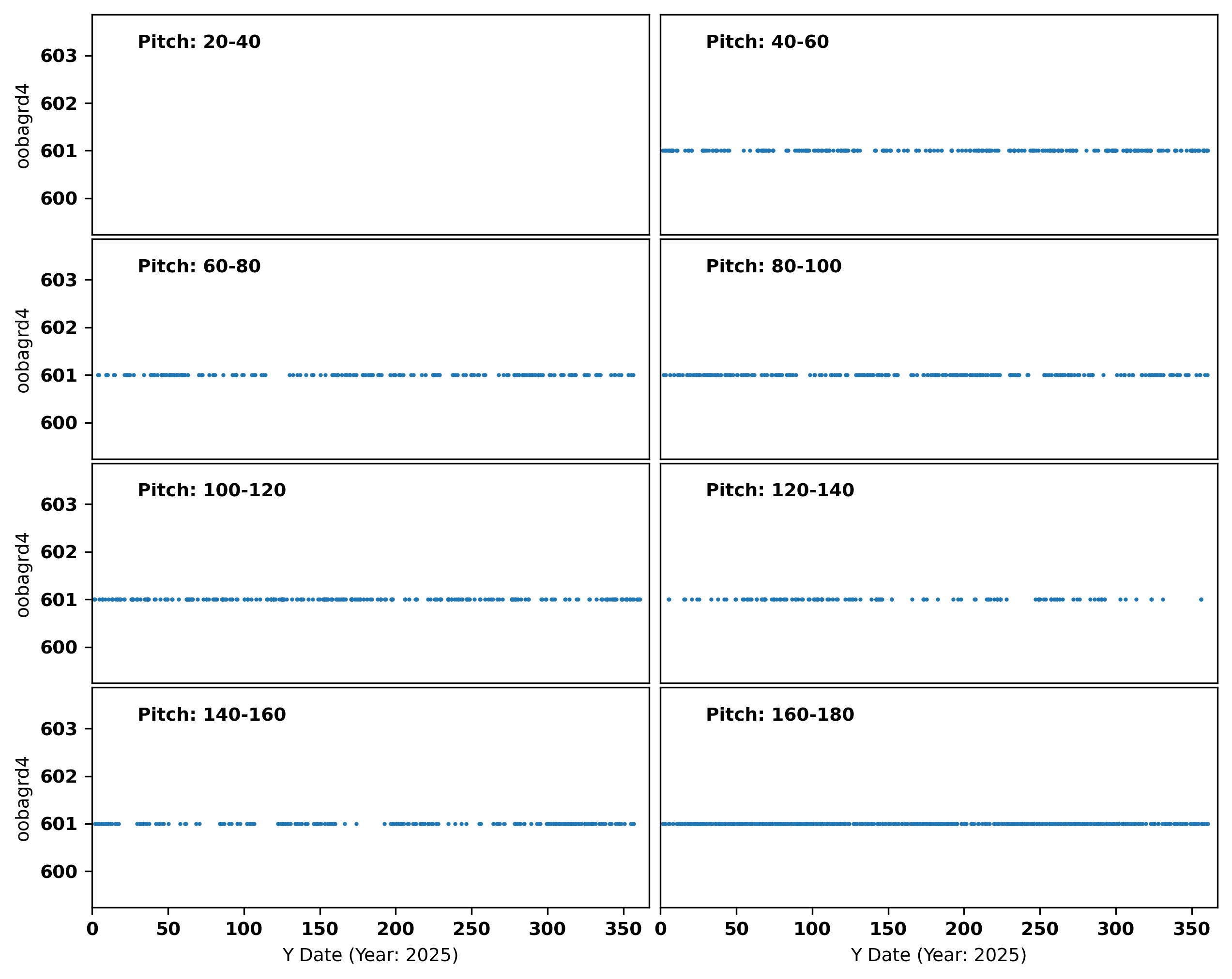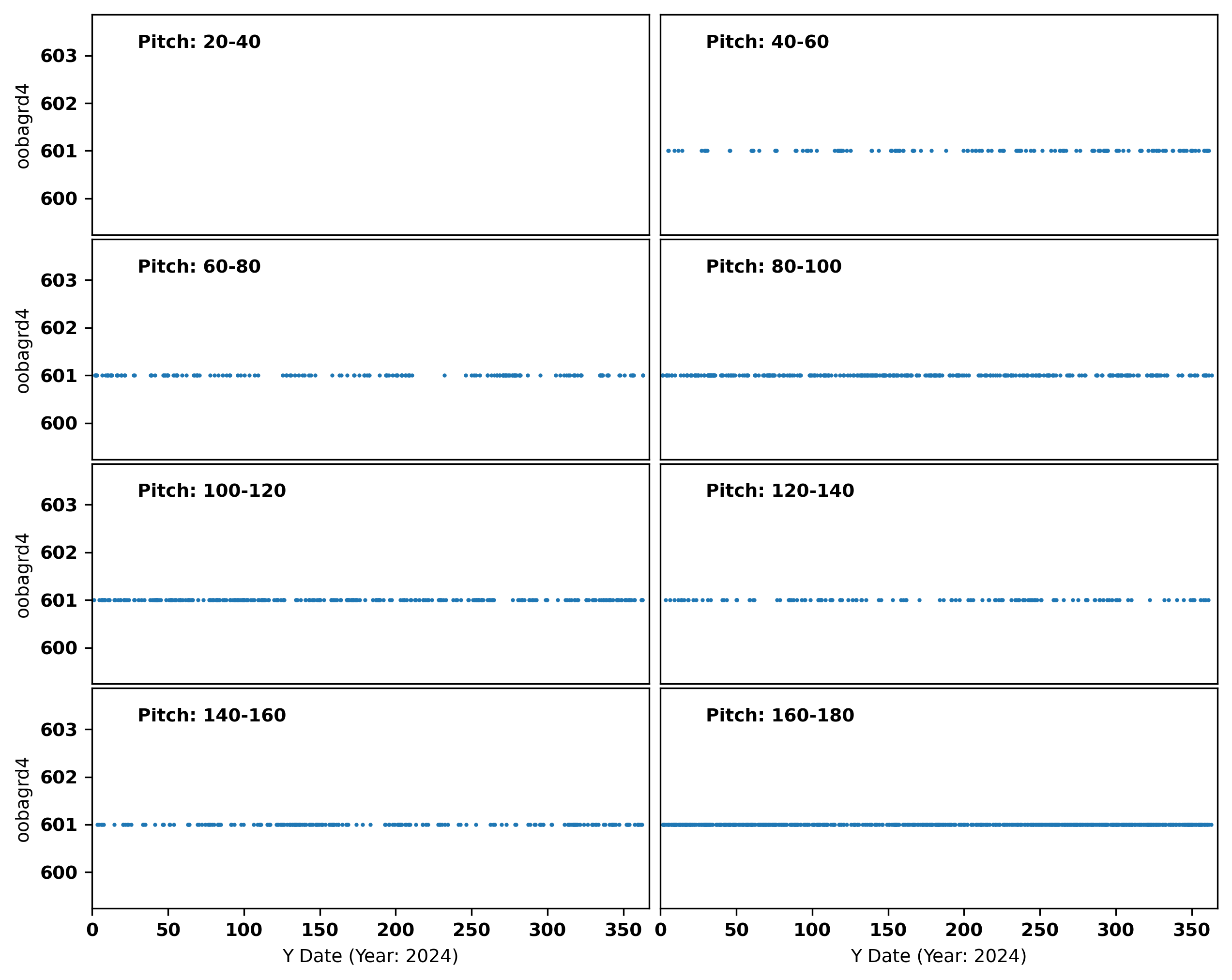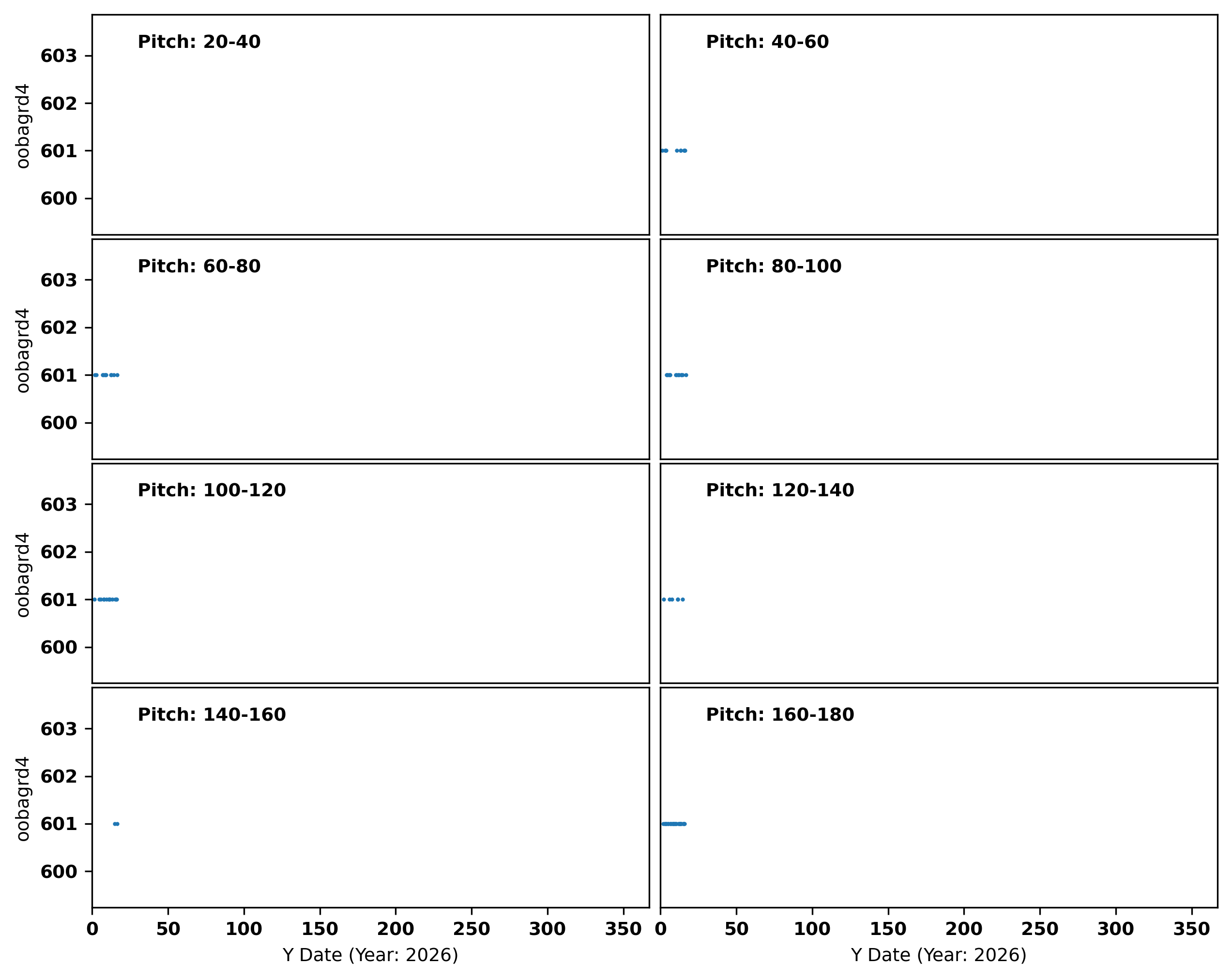 Click the dot in the table to select the year to display. Or click the lime color arrows at either side of the plot to move to the previous or the next year.