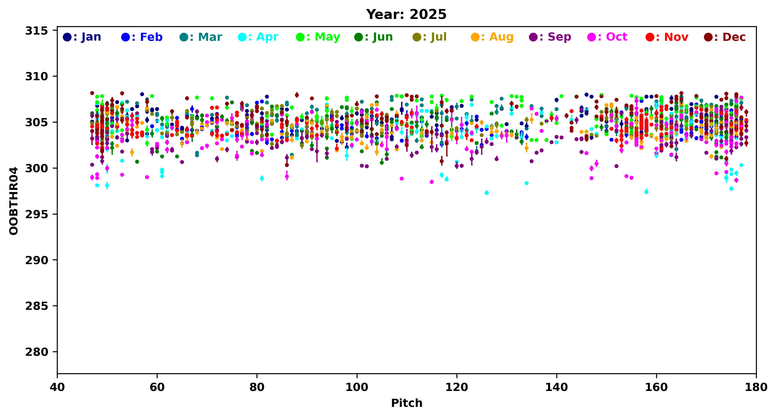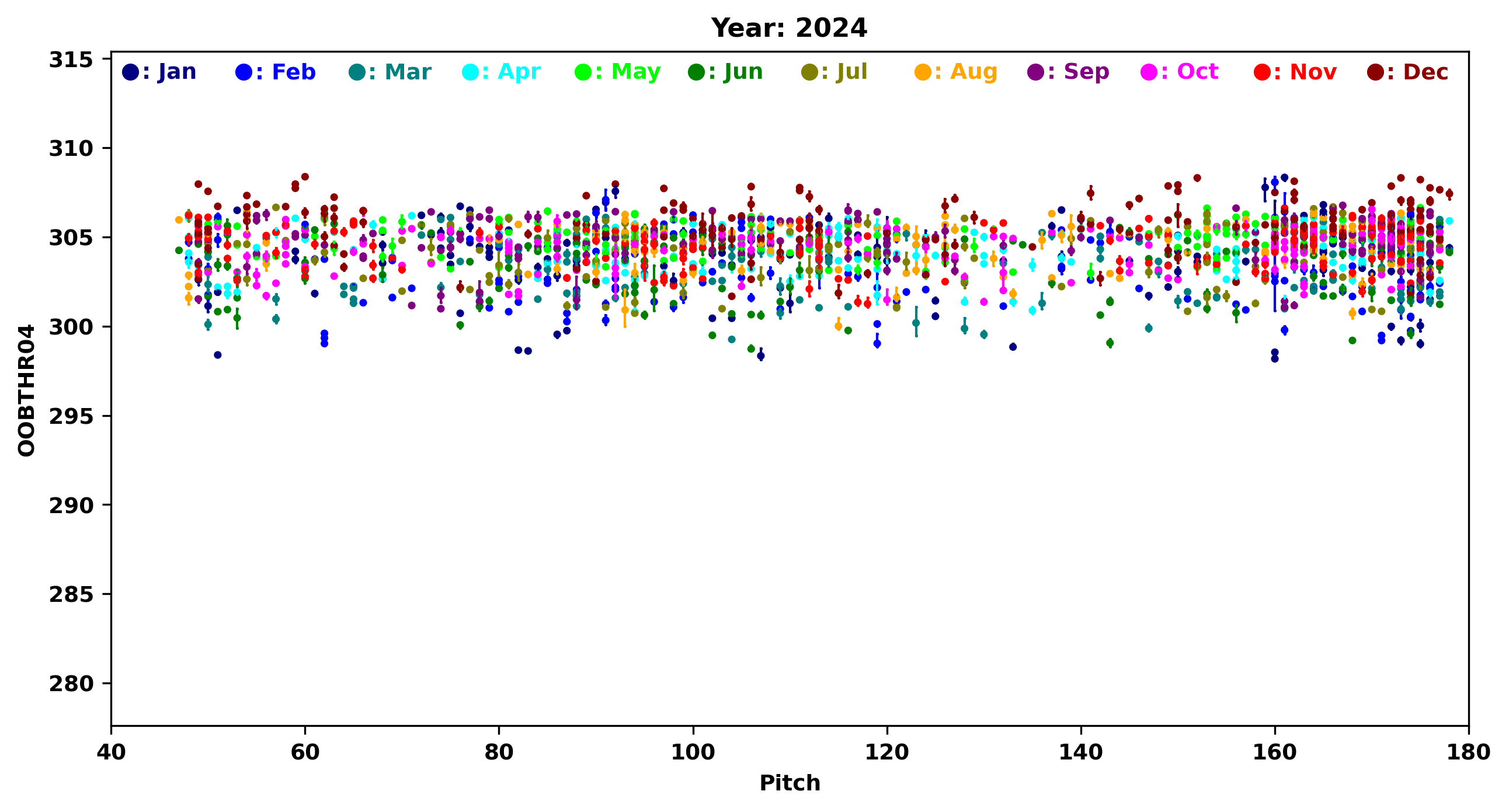 Click the dot in the table to select the year to display. Or click the lime color arrows at either side of the plot to move to the previous or the next year.