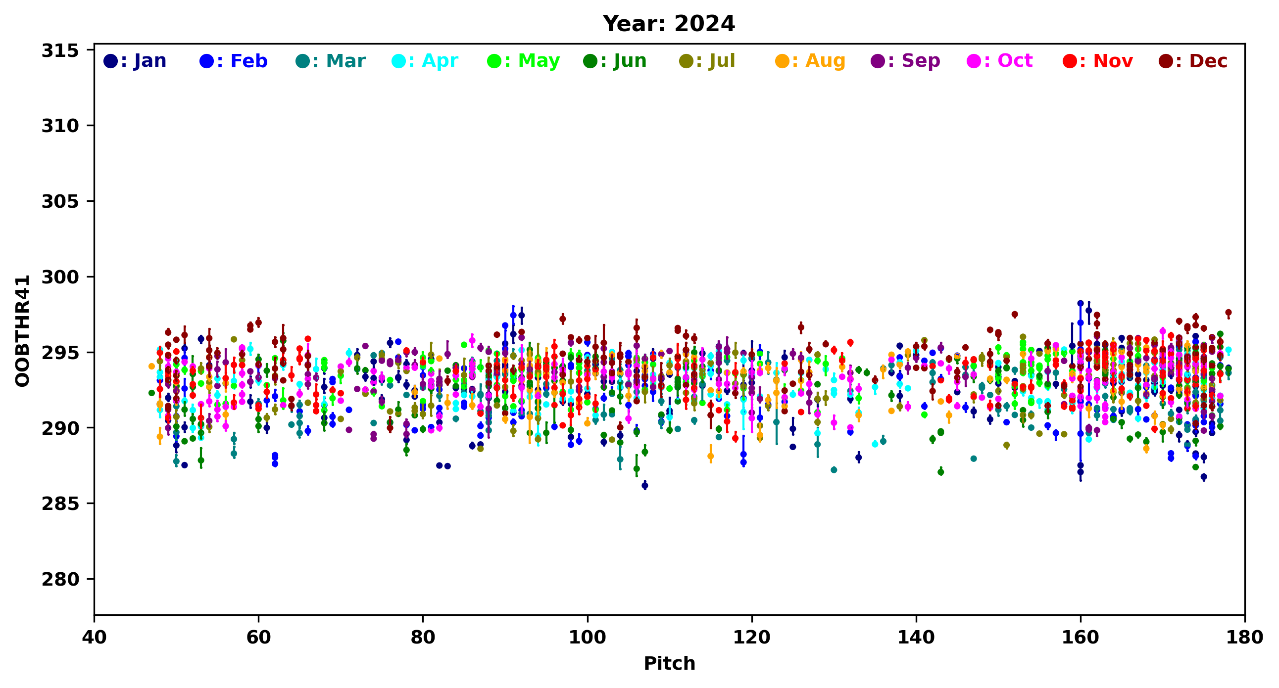 Click the dot in the table to select the year to display. Or click the lime color arrows at either side of the plot to move to the previous or the next year.