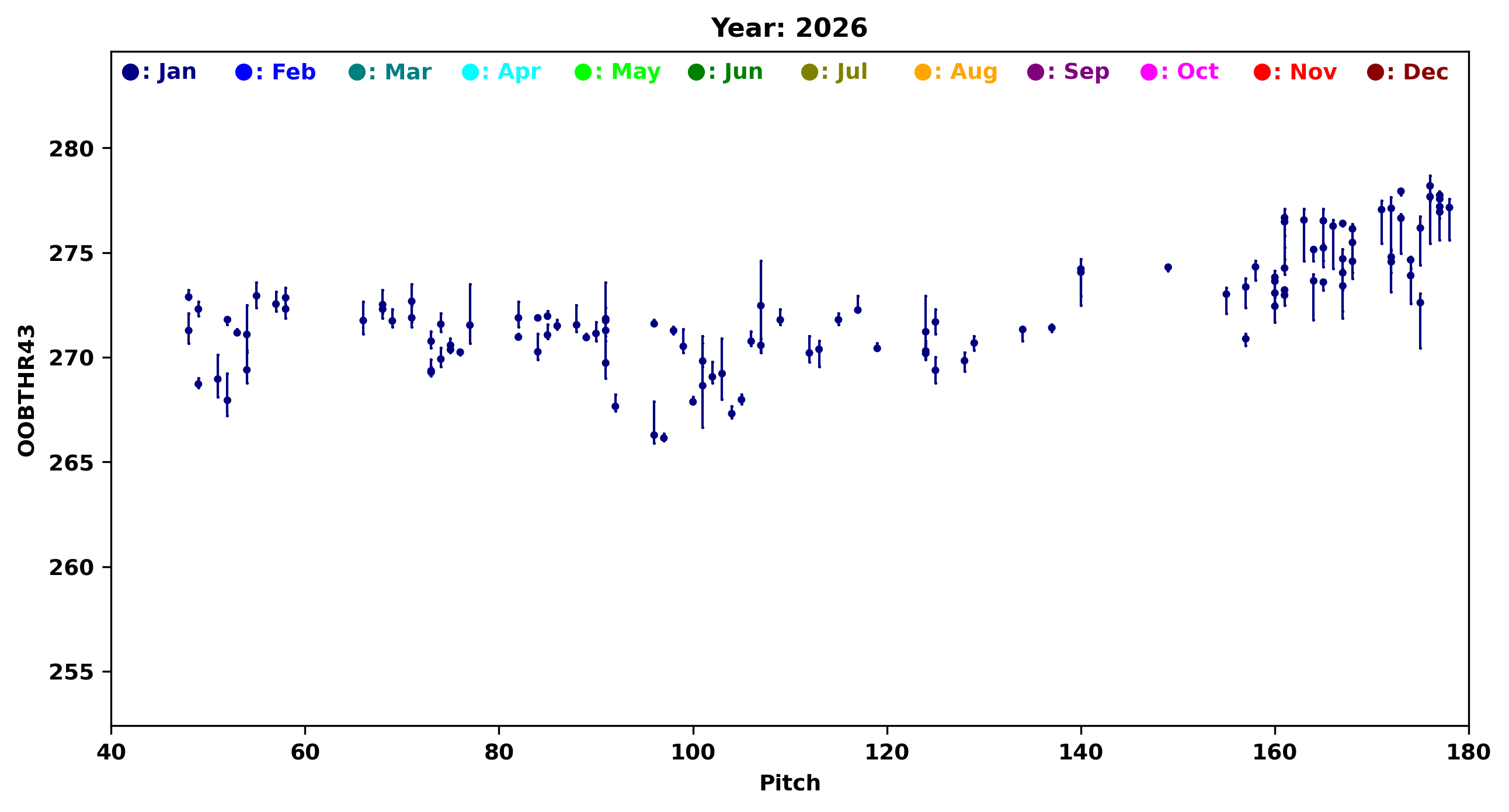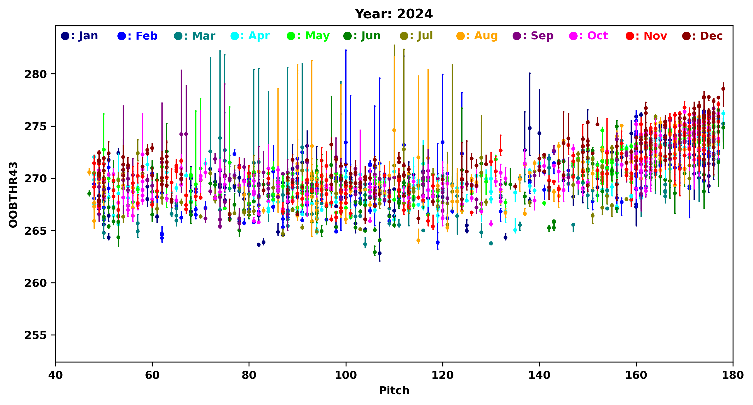 Click the dot in the table to select the year to display. Or click the lime color arrows at either side of the plot to move to the previous or the next year.