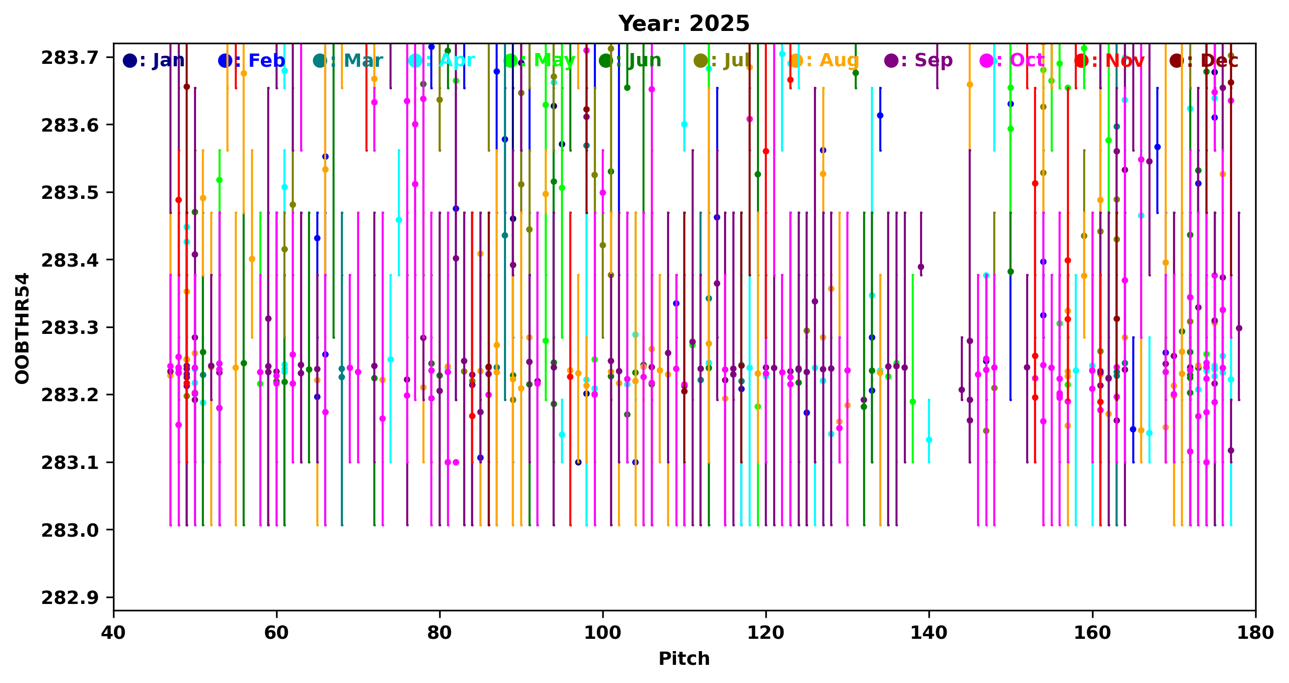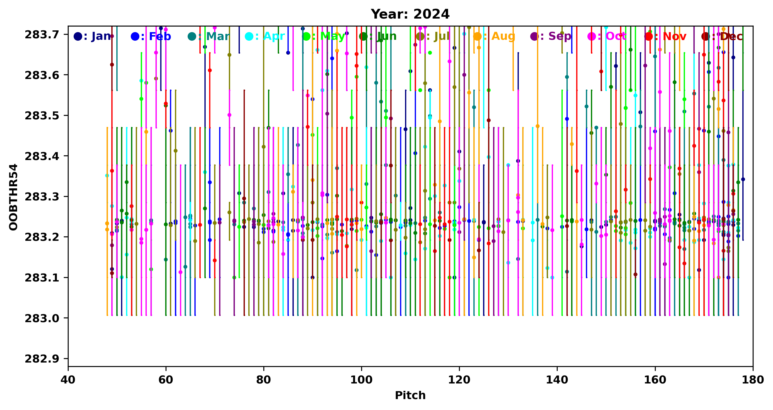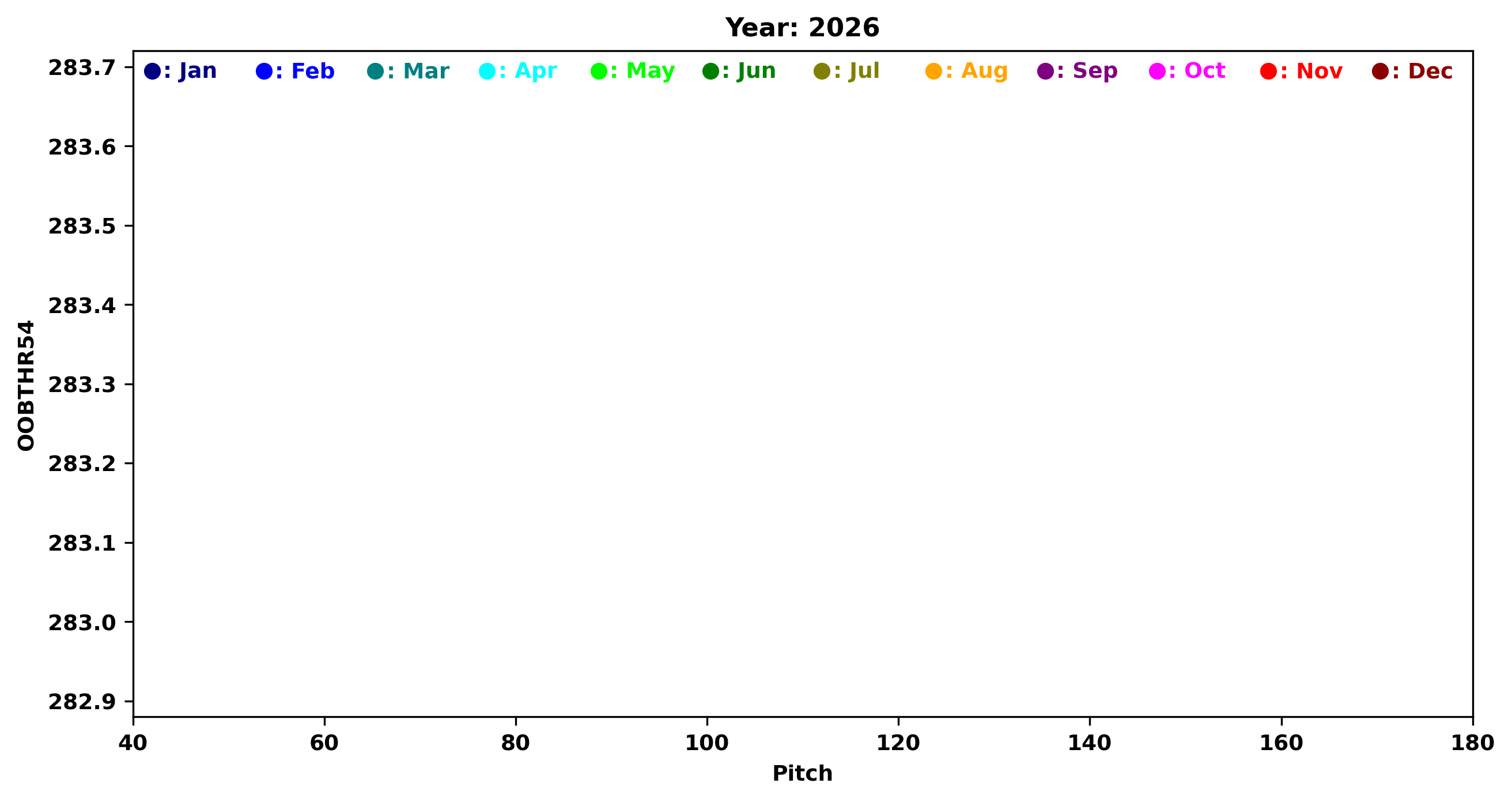 Click the dot in the table to select the year to display. Or click the lime color arrows at either side of the plot to move to the previous or the next year.