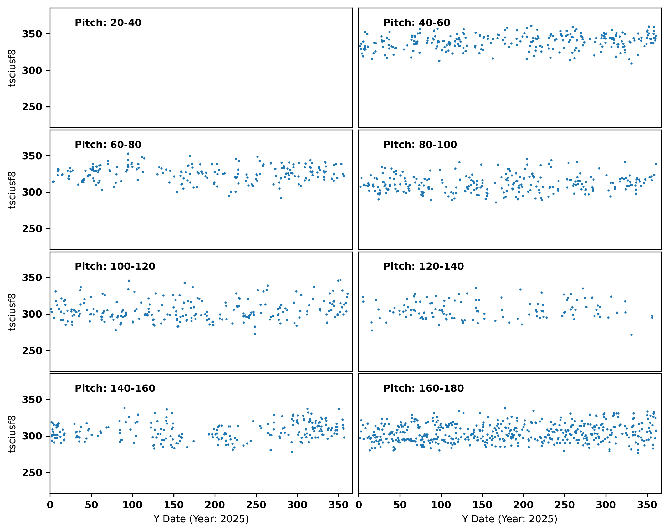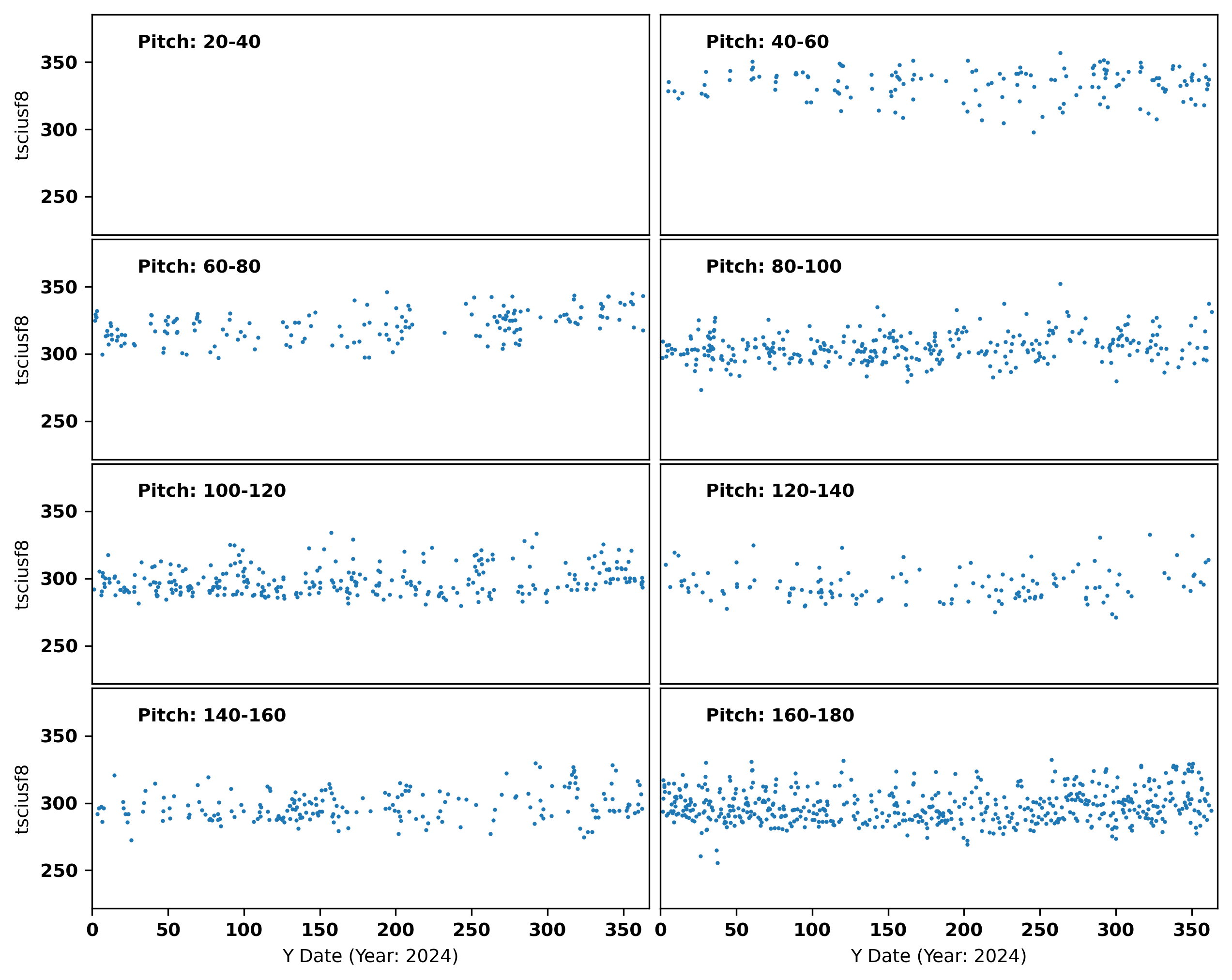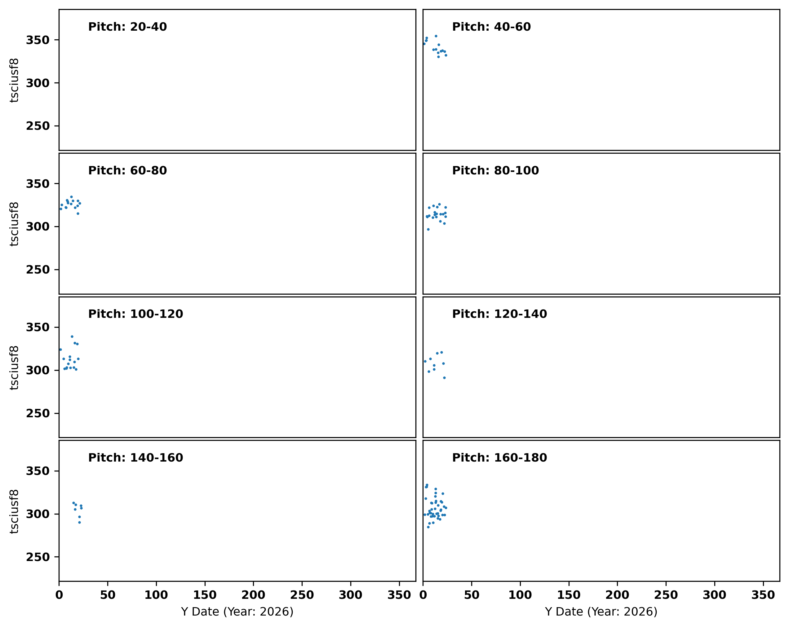 Click the dot in the table to select the year to display. Or click the lime color arrows at either side of the plot to move to the previous or the next year.