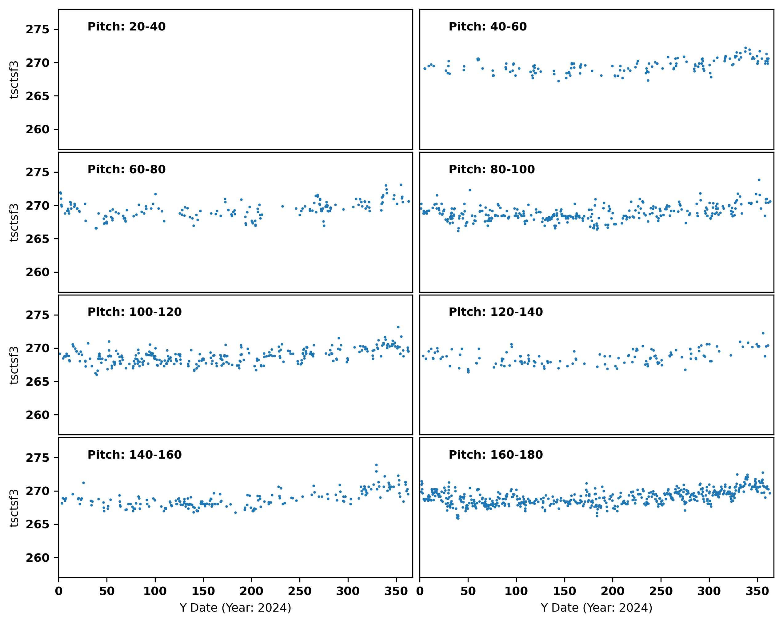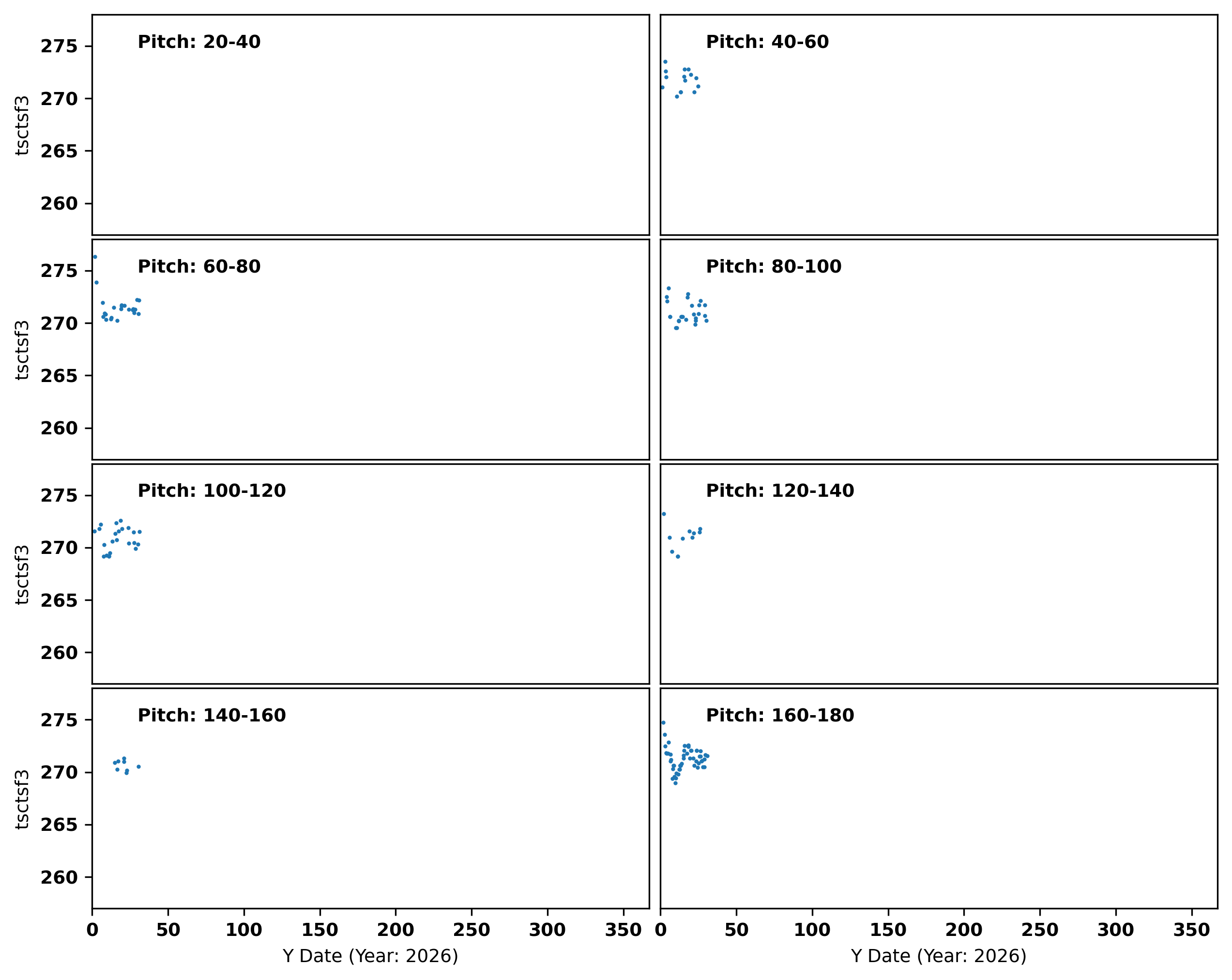 Click the dot in the table to select the year to display. Or click the lime color arrows at either side of the plot to move to the previous or the next year.