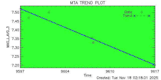 | ID | ID String | Magnitude | Data Quality (%) | Total Data | Average | Min | Max | Good | Marginal | Bad | 1 | ACIS-1 | 7.234 | 6.610 | 7.352 | 100 | 0 | 0 | 17 | 2 | ACIS-2 | 7.100 | 6.906 | 7.224 | 100 | 0 | 0 | 31 | 3 | ACIS-3 | 7.412 | 7.271 | 7.521 | 100 | 0 | 0 | 4 | 4 | ACIS-4 | 7.209 | 6.688 | 7.323 | 100 | 0 | 0 | 31 | 5 | ACIS-5 | 7.215 | 6.596 | 7.329 | 100 | 0 | 0 | 44 | 6 | ACIS-6 | 7.276 | 6.725 | 7.465 | 100 | 0 | 0 | 20 | 7 | HRC-I-1 | 0.000 | 0.000 | 0.000 | 0 | 0 | 0 | 0 | 8 | HRC-I-2 | 0.000 | 0.000 | 0.000 | 0 | 0 | 0 | 0 | 9 | HRC-I-3 | 0.000 | 0.000 | 0.000 | 0 | 0 | 0 | 0 | 10 | HRC-I-4 | 0.000 | 0.000 | 0.000 | 0 | 0 | 0 | 0 | 11 | HRC-S-1 | 0.000 | 0.000 | 0.000 | 0 | 0 | 0 | 0 | 12 | HRC-S-2 | 0.000 | 0.000 | 0.000 | 0 | 0 | 0 | 0 | 13 | HRC-S-3 | 0.000 | 0.000 | 0.000 | 0 | 0 | 0 | 0 | 14 | HRC-S-4 | 0.000 | 0.000 | 0.000 | 0 | 0 | 0 | 0 |
