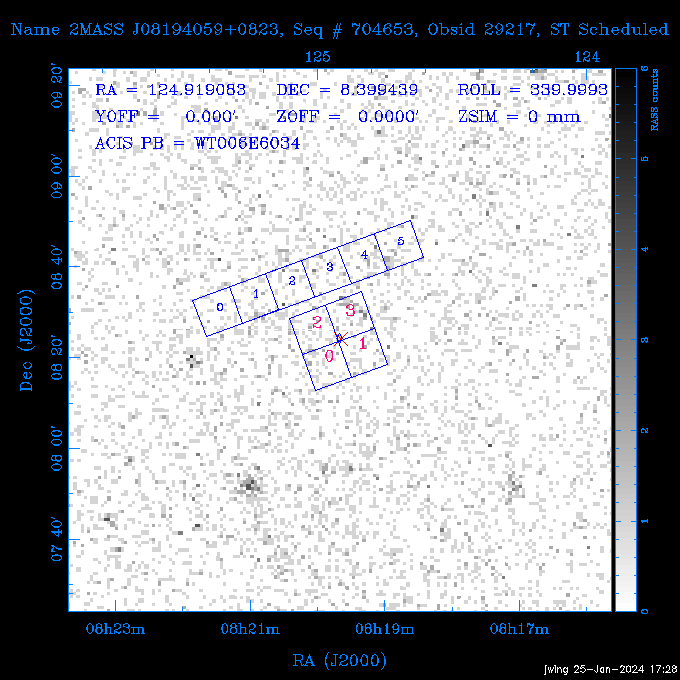 704653 29217 0 2MASS J08194059+0823 2024:028:22:35:03.850 10.0 ACIS-I NONE 124.9016 8.3922 345.00 168.67 82.94 dss pspc rass